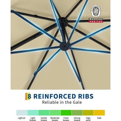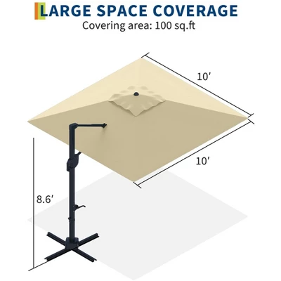 10Ft Offset Hanging Market Patio Umbrella, Outdoor Offset Cantilever Umbrella, Polyester Fabric Shade, Easy Tilt Adjustment, Patio Umbrella with Base Included for Backyard, Lawn and Garden