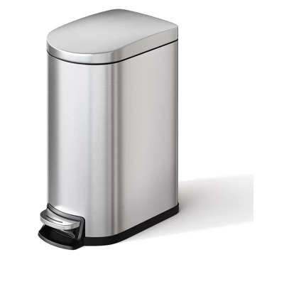 2.6 Gallon / 10 Liter Metal Bathroom Trash Can with Lid, Slim Waterproof Garbage Can for Bedroom, Small Step-on Trash Bin with Inner Bucket, Rear Handle, Soft Close Lid