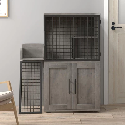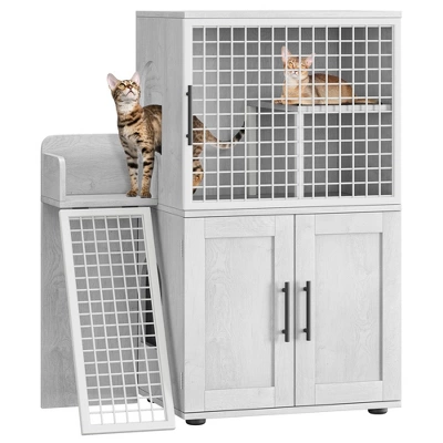 - 【🐱Multi-functional Cat House】Designed for active felines, this cabinet includes a climbing ladder and an upper platform for play, exploration, and napping. Combines practical litter management with enrichment to enhance your cat’s daily life.
