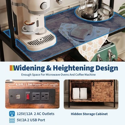 - –Stay Connected: This microwave stand includes a charging station with three AC outlets and two USB ports, keeping your devices powered and ready. Enjoy convenient charging for your kitchen gadgets right where you need it, free from tangled cords