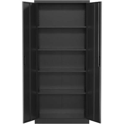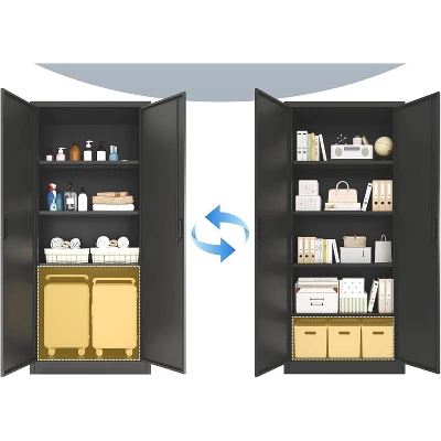 - 【Versatile Multi-Room Use】 Designed for versatility, this black steel storage cabinet fits seamlessly in kitchens, bedrooms, garages, laundry rooms, offices, and shops. It blends with any décor style and offers ample storage space for tools, cleaning supplies, pantry items, files, and more, making it a smart solution for any storage need.