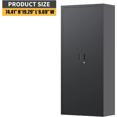 - 【Secure Tall Cabinet】 This 71-inch locking cabinet comes with doors and two key sets, ensuring your valuables and confidential items are safe. With dimensions of 71″x31.5″x15.75″, it provides spacious storage to help keep your garage, pantry, craft room, bedroom, or office organized and secure.