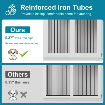 - 【Heavy Duty Dog Kennel】Thisfurniture style dog crate is made of durable solid wood and iron, the 0.4 inch thick iron pipe is stronger and more bite resistant than other dog kennel furniture, and will accompany your dog through the whole stage of development.