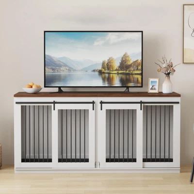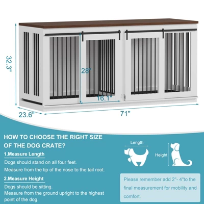 - 【Sliding Barn Door Dog Crate】Our double dog cage furniture with sliding door ensures that opening the door will not hinder your movement. With a sliding barn door design, your pet dog can easily enter the dog cage without any hindrance.