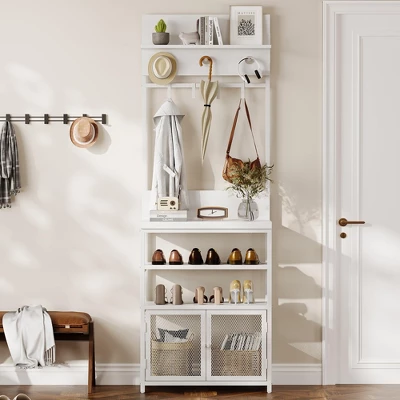 - Spacious Storage Solution: Features a 72.8-inch tall hall tree with doors, providing ample space to organize coats, shoes, and accessories in one compact unit.