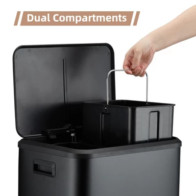 - 【QUIET DESIGN】The trash can incorporates ABS hydraulic reduction technology to ensure the lid closes slowly and quietly when you release the pedal. The trash can delivers outstanding silent performance, creating a peaceful environment.