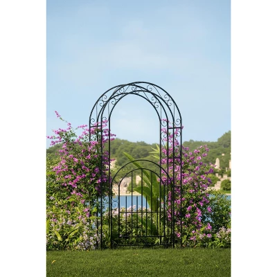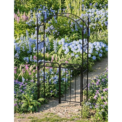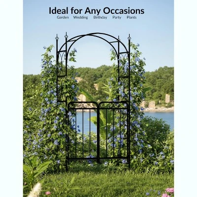 8FT Black Garden Arch with Gate ¨C Heavy-Duty Metal Arbor for Wedding Decor, Sturdy Steel Archway for Climbing Roses & Vines, Perfect for Patio, Backyard & Outdoor Events