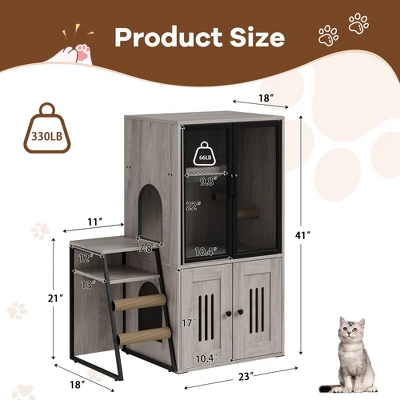 - Easy to Assemble: Includes detailed instructions and all necessary hardware for a hassle-free assembly. Cat litter cabinet size: 22.6″ L x 17.7″ W x 10.9″H,ladder size: 11″ L x 17.7″ W x 21.2 “H