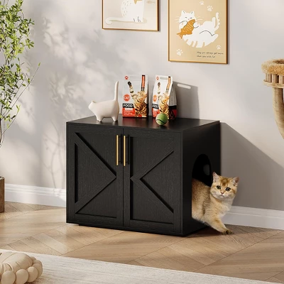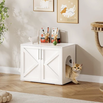 Cat Litter Box Enclosure, Wooden Cat Washroom Furniture with Barn Door Hidden Litter Box Furniture Pet House, Fit Most of Litter Box
