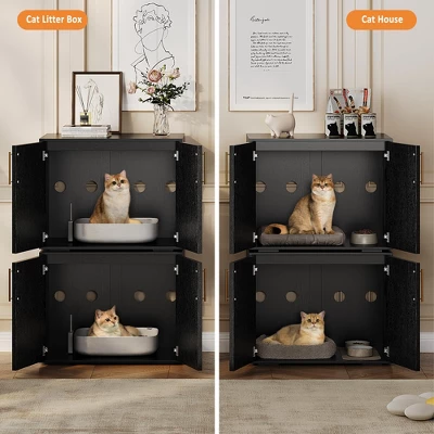 - Generous Dimensions: Measuring 25.59 x 17.72 x 22.44 inches, this cat litter box cabinet accommodates most standard litter boxes and provides a spacious interior for your cat to move comfortably, making it an ideal addition to any home