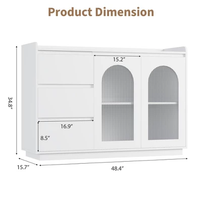 - Ample Storage Space: Measuring 48.4″ W Ă— 15.7″ D Ă— 34.8″ H, this white buffet cabinet features a stunning fluted glass door, drawers, adjustable shelves and 3 color led lights, it is ideal for holding items such as coffee machines or decorative displays