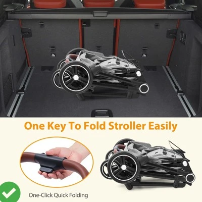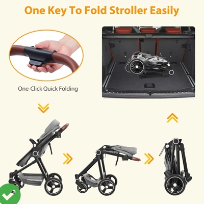 - 【Effortless Maneuvering & Enhanced Suspension】 Enjoy Smooth Steering With Omnidirectional Wheels And Advanced Suspension For A Comfortable Ride. The Faux Leather Handle Adds Luxury And Grip, While The Jogger Stroller Design Offers Easy Maneuverability And A Reliable Suspension System.