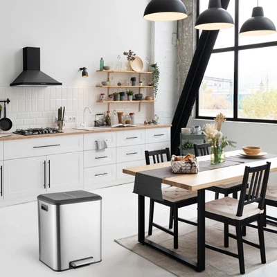 - 【Versatile Use】: Ideal for various spaces, this dual trash can serves as a kitchen garbage can, recycle bin, or trash bin, making it a practical addition to any home or office environment.