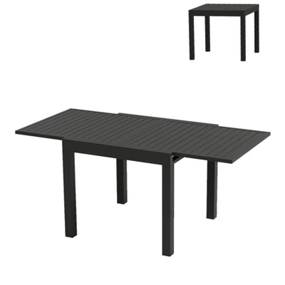 Expandable Patio Table for 4-6 Persons, Extentable Outdoor Dining Table Set 31.5″-63″, Aluminum Slat Frame, Rectangular, for Porch, Deck, Garden, Pools, Table