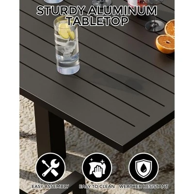 - Durable Aluminum Frame: Crafted from solid aluminum with a specially thickened tabletop, this aluminum outdoor table offers outstanding durability and load-bearing capacity. Enjoy a safe and stable dining space, perfect for daily meals or entertaining guests indoors or outdoors