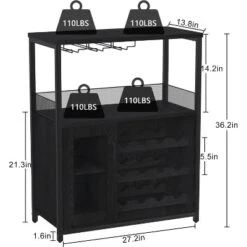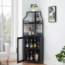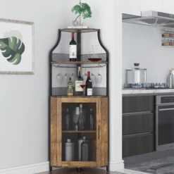 Corner Wine Bar Rack Cabinet With Detachable Wine Rack, Bar Cabinet With Glass Holder