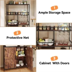 Coffee Bar Cabinet With Sliding Barn Doors, 70” Kitchen Hutch Cabinet With Storage