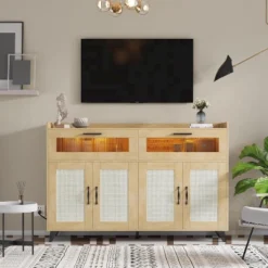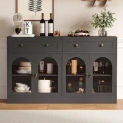 55.1″ Sideboard Buffet Cabinet With Storage,Buffet Table With 2 Drawers And 4 Acrylic Doors