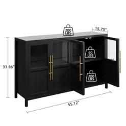 Sideboard Buffet Cabinet With 4 Glass Doors, 55″ Buffet Table Coffee Bar Wine Bar Display Cabinet