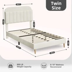 Twin/Twin XL/Full Bed Frames, Velvet Upholstered Platform Bed Frames With Bookcase Headboard, Kids Bed For Girls, Heavy Duty Steel Support Legs