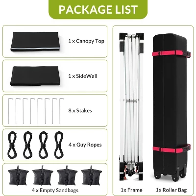 - Portable Features: Designed for easy transport, this outdoor shelter comes with a convenient roller bag (47″x 8.5″x 8.5″) equipped with wheels, making it simple to transport to any event while providing instant shade and protection.