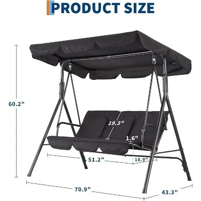 Jojoka 3-Seat Patio Swing Chair,Outdoor Porch Swing