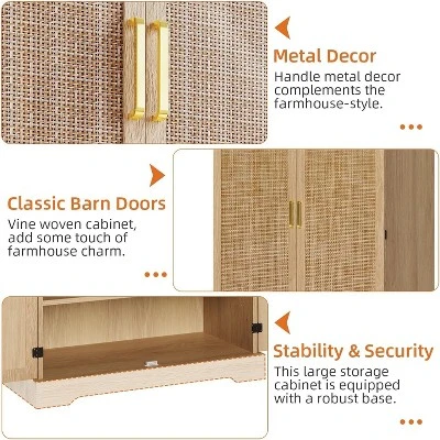 - Rattan Doors Design: Embrace farmhouse charm with our tall kitchen storage cabinet featuring 4 rattan doors, which are tough, durable, and breathable. Rattan’s rustic atmosphere and exquisite light oak wood grain effortlessly blend modern rustic aesthetics into your kitchen or living room, with a light oak storage cabinet enhancing any decor style