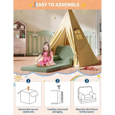 - 2-in-1 Convertible Couch & Lounger: Easily switches from a couch to a comfy bed in seconds—perfect for reading, playing, or napping. The versatile design brings endless possibilities for fun and relaxation to any room or family visit