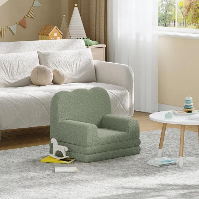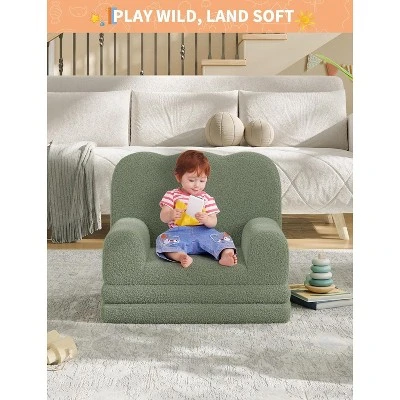 Kids Couch, 2-in-1 Convertible Teddy Fleece Fabric Toddler Sofa Chair, Soft Fold Out Couch Lounger for Kids, Comfy Children’s Sofa Bed for Playroom, Nursery, Birthday Gift, Grey