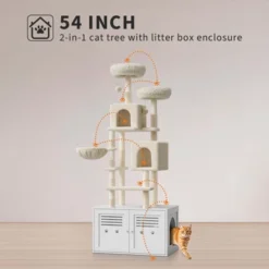 - 【3-in-1 Cat House】: With a cat tree and a cat litter box enclosure in one, offers a 3-in-1 space where your cat can use the washroom, play, relax, and sleep. It is spacious enough to accommodate most small and medium-sized cats