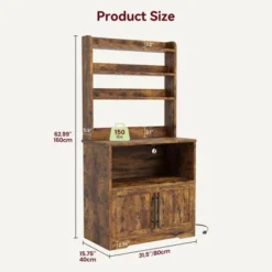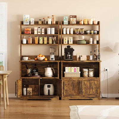 - 4. Versatile Use: This kitchen bakers rack with doors has multiple functionalities and can be placed in the dining room, kitchen, living room, and more. It can serve as a side cabinet, coffee or tea station, or bar counter, providing storage for various kitchen spices or decorative items, maximizing your storage capacity. Its compact, vertical design optimizes space and complements rustic decor in any room