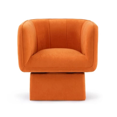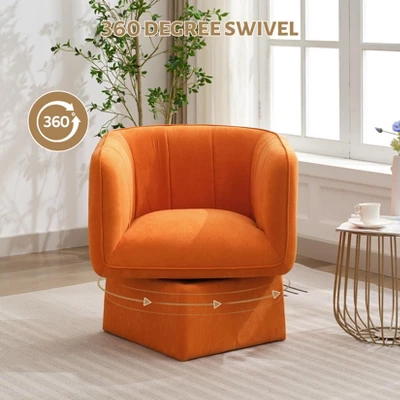Add a touch of luxury and versatility to your space with this modern swivel barrel accent chair Upholstered in high-quality, skin-friendly velvet fabric that is breathable, scratch-resistant, and easy to clean, it offers exceptional comfort and style The ergonomically designed wrap-around barrel backrest and angled armrests provide cozy support, while the wide rumble cushion filled with high-resilience foam ensures plush seating for weights up to 300 pounds Enjoy seamless 360-degree swivel rotation with a sturdy base that also allows adjustable seat height for personalized comfort Perfectly suited for living rooms, bedrooms, offices, or cozy reading corners, this chic velvet chair blends effortlessly with minimalist and contemporary d¨¦cor Easy to assemble in under 15 minutes, it measures 30″W x 26″D x 29.3″H, making it an ideal statement piece for any room Dimensions & Features: Overall Size: 30″ W x 26″ D x 29.3″ H Upholstery: Luxurious, skin-friendly velvet fabric Cushion: High-resilience foam for superior comfort Features: 360¡ã swivel rotation, ergonomic barrel backrest, angled armrests, adjustable seat height Weight Capacity: Supports up to 300 lbs Assembly: Easy setup in 15 minutes or less What You Get: 1 Modern velvet swivel barrel accent chair with assembly hardware and instructions After-Sales Service: We provide comprehensive assembly guidance and responsive customer support to ensure your satisfaction and long-lasting enjoyment