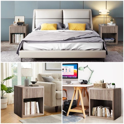 - 【Nightstand with Large Storage】Overall dimensions: 22.7″W x 15.4″ D x 24.1″H. The design of the drawers and open storage provides you with ample space for staging framed photos, artful accents, and more.With 1 smooth-glide drawers and a open niche,it ensures efficient storage for daily essentials like laptops and books.