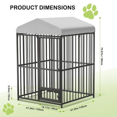 Outdoor Dog Kennel, 4x4x6 Ft /8 x 4 x 6 FT Metal Dog Kennel with Roof, Safety Lock & Rotating Feeder, Suitable for Dogs, Cats, Chickens, Rabbits