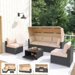 5-Piece Patio Furniture Set,PE Rattan Wicker Sectional Sofa Set With Coffee Table