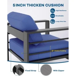 4 Piece Modern Outdoor Conversation Sets With 4 Inch Cushion & 5mm Tempered Glass Table