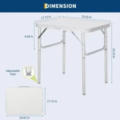 Small Folding Table, Adjustable Height Aluminum Frame Foldable Camping Table With Carrying Handle