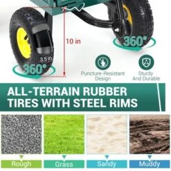 Garden Two Wheeled Trolley With 2 Large 15″ Inflatable Wheels For Outdoor Lawn Yard Farm Ranch
