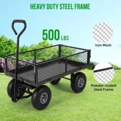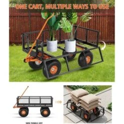Heavy Duty Steel Garden Wagon Cart Capacity With Removable Sides Tires For Yard Lawn Farm Warehouse