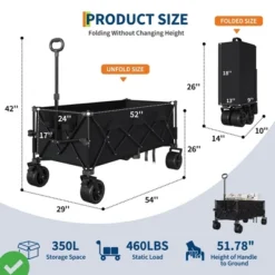 Heavy Duty Steel Garden Cart Folding Utility Wagon With Removable Cart Liner, 500 Lbs Capacity