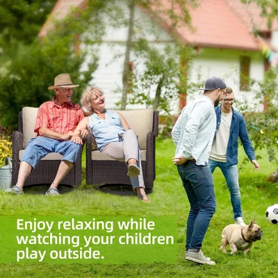 - Exceptional Comfort: Each chair comes with a thick, high-density cushion that cradles your body. Ergonomic backrest and wide armrests offer superior support for long conversations or lounging. Removable, weatherproof covers are easy to clean and maintain.