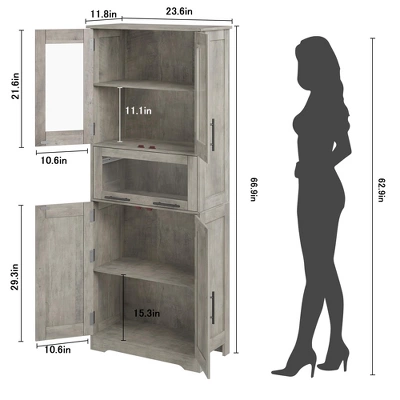 - VERSATILE STORAGE CABINET – It transitions effortlessly from a bathroom floor cabinet to a display floor cabinet in your living room, showcasing trophies, collections, and plants. In the kitchen, it becomes a pantry for spices and tableware; in your study, it stands as a bookcase for books and documents. This wooden storage cabinet effortlessly adapts to your ever-changing needs, making it the perfect addition to any room in your home.