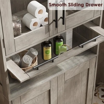 - PREMIUM MATERIALS & SAFE – Crafted from upgraded high-density MDF board with eco-friendly, waterproof paint, this tall bathroom cabinet stands for its durability and sturdiness even in wet environments. With excellent craftsmanship and an added anti-tip device, safety and stability are guaranteed for long-term use.