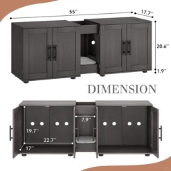 Cat Litter Box Enclosure 55.1″ Double Litter Box Furniture Large Cat Box Enclosure Kitty Litter Box