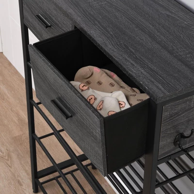 Shoe Rack, 4 Tier Shoe Storage Organizer With 2 Drawers, Metal Shoe Shelf Shoe Stand Shoes Storage Rack One Set Hallway Show Rack With Storage And Hooks For Home Entry Way Black+ Gray