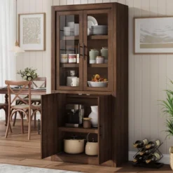 Tall Kitchen Pantry Storage Cabinet With 2 Glass Doors 72″ Pantry Cabinet With Storage Drawers