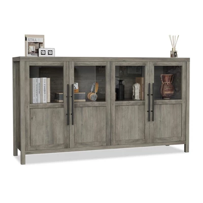 Sideboard Buffet Cabinet with 4 Glass Doors, 55″ Buffet Table Coffee Bar Wine Bar Display Cabinet for Kitchen Dining Room, Living Room
