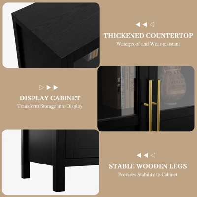 - Elegant Showcase: The glass door sideboard buffet cabinet showcases dinnerware and decor, adding elegance and openness to any room, while the wooden parts provide privacy for less frequently used items, keeping your space organized and tidy.